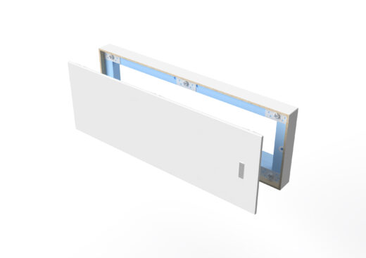 Le coffre de rénovation MyBox Revo propose un panneau frontal pratique, avec une fixation par pression et démontable via une poignée métallique dédiée. Cela facilite l’inspection interne pour les vérifications ou l’entretien, tout en préservant la légèreté du design. Il peut être configuré pour s’adapter aux menuiseries posées en applique intérieure ou en tunnel, avec l’option d’une sous-face intégrée ou séparée.